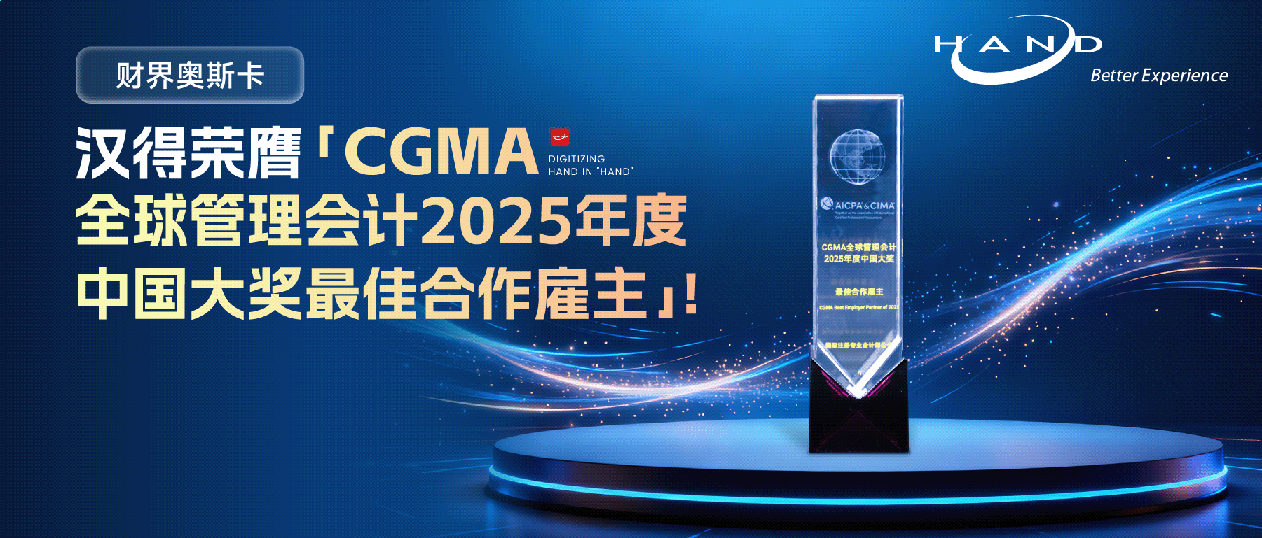 近日,被誉为“财界奥斯卡”的CGMA全球管理会计2025年度中国大奖暨CFO高峰论坛在上海圆满落幕,汉得应邀参会并荣膺“CGMA全球管理会计2025年度中国大奖最佳合作雇主”,汉得高级副总裁唐健先生作为公司代表上台领奖。本届盛会由英国皇家特许管理会计师公会(CIMA)主办,上海国家会计学院担任学术指导单位,以“跃见新章,共赴新程:AI时代的财务领导力范式重塑”为核心主题,汇聚全球顶尖业界领袖与行业专家,以及四百余位CGMA持证人、财界精英共襄盛会。▲ 汉得高级副总裁唐健先生(右二)作为公司代表上台领奖荣耀时刻「年度最佳合作雇主」凭借在自身业务发展中展现的卓越实力,以及在财务、金融人才培养上作出的杰出贡献,汉得成功获颁“年度最佳合作雇主”奖项。CGMA“年度最佳合作雇主”奖项,旨在表彰那些为CGMA会员提供广阔平台、支持其职业成长、并将其融入企业战略决策核心的雇主。该奖项重点关注企业在吸引、培养和保留管理会计人才方面的卓越表现,聚焦企业对管理会计专业的高度认可和投入,涉及人才发展战略、专业能力建设、员工赋能等多个维度。作为企业长期可信赖的数字化伙伴,汉得一直以来都非常重视数字化人才培养与经验输出,通过对专业人才的系统培训、提供创新实践机会,以及职业规划指导等支持,致力于培养具备国际化视野、卓越管理技能和数字化思维的优秀财务、金融人才,推动行业可持续高质量发展。祝贺汉得客户中控技术「年度最佳管理会计实践奖」在本次评选中,汉得重要客户——中控技术股份有限公司(以下简称“中控技术”)凭借卓越的管理会计实践成果脱颖而出,荣获「年度最佳管理会计实践奖」,充分彰显其在数智化财务管理领域的领先实力。作为中控技术的长期合作伙伴,汉得助力中控技术构建自动化、智能化的财务管控体系,实现财务管理前置化、业务数据互联化与决策支持精准化,在降本增效、库存优化等多个方面取得显著成效。作为CGMA 2025年度最佳合作雇主,汉得倍感荣幸。未来,我们将继续与公会深化合作,在财务数智化、人工智能助力企业降本增效上共同探索创新,助力更多企业提升财务效能水平,为行业树立数智化转型标杆。关于汉得管理会计与大数据汉得管理会计与大数据团队是一支专注于管理会计与大数据领域的专业团队,长期致力于助力企业财务管理升级与优化,帮助企业挖掘数据价值、提升运营效率与决策能力。团队以“利用管理会计工具与先进数据技术,助力企业高质量发展”为使命,致力于利用大数据、算法、AI等先进数据技术,为企业提供业财融合的管理会计与智能数据分析解决方案。目前团队能够为企业提供包括战略规划、经营计划、全面预算、经营/财务预测、合并报表、成本分析、经营分析、管理报告等数字化解决方案。携手汉得,共铸硬核竞争力!