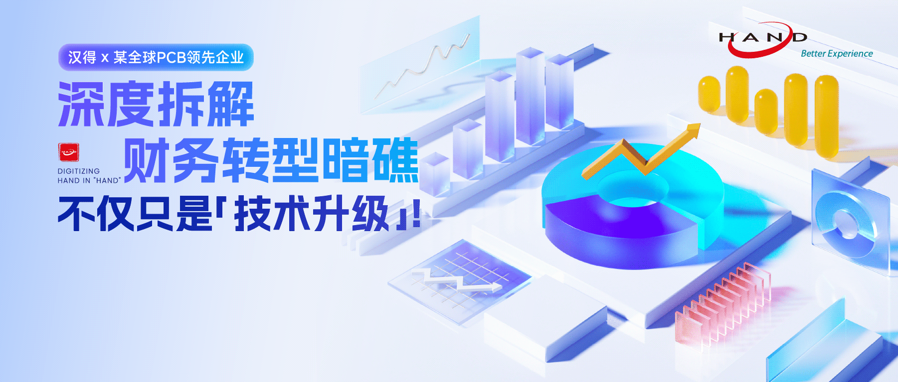 近日,汉得正式携手全球领先的印制电路板(PCB)上市供应商,启动财经数字化建设咨询项目!此次项目将以“提高人效、业财融合”为核心目标,为该企业量身定制未来几年的财经数字化规划蓝图与落地路径,助力其破解财务运营痛点,抢占制造业数字化转型先机。全球PCB领先企业数字化转型多重挑战亟需破解作为深耕PCB行业三十余年的国家高新技术企业,该企业不仅是全球最大的印制电路板供应商之一,更于2017年登陆上交所主板,2024年,企业营业收入位列行业全球第10位,目前已在全球设立10个办事处。该企业始终坚持持续创新,加大基础研究投入,不断夯实公司的技术能力;同时,也通过大数据信息化平台、先进生产制造系统与深厚的技术沉淀,持续为全球客户创造价值。然而,随着业务规模与行业竞争加剧,企业的财经管理正面临多重挑战:�财务效率提升难:财务管理部目前工作仍依赖大量手工或线下操作,既耗费人力时间,又存在错漏风险,即便强化内控也很难提高管理效率此外,随着业财融合的推进,业务部门对财务数据的质量与及时性要求显著提升,大力推动财经数字化建设势在必行�先进企业对标差距:此前,客户已调研学习多家优秀企业的财务数字化实践,先进企业都有在财经领域的数字化建设做了整体规划并制定清晰落地路径在企业财经数字化建设进程中,“头疼医头、脚疼医脚”的散点做法,将导致数字化建设效果大打折扣:一是容易忽视解决长期困扰的底层问题;二是各散点方案之间的协调性不强�企业变革规划:在数字经济与人工智能蓬勃发展、制造业数字化转型成为大势所趋的当下,结合企业财务工作的现状和未来的整体规划,启动系统性财经数字化建设已迫在眉睫以客户需求为导向助力破除财务转型暗礁面对客户财务管理领域的复杂需求,汉得智慧财务团队并非简单提供标准化方案,而是先沉下心做“深度拆解”:通过全流程调研、多维度的访谈,穿透财务日常运营的表象,精准定位客户企业财务管理痛点!在此基础上项目共识别出多项跨组集成专题变革流程,重点聚焦预算流、资金流、核算流等财务域关键问题,解决业财融合等跨组集成关键问题。后续,双方也将以规划蓝图为指引,分步实现推进数字化落地,逐步实现财务人效提升、业财深度协同,为企业高质量发展注入数字化新动能。从痛点识别到流程梳理,从专题规划到落地推进,汉得始终以客户需求为导向,用专业能力掌舵,以精准的诊断、清晰的路径、可落地的方案护航,助力企业一步步破除财经数字化转型暗礁,让财务数字化不仅只是“技术升级”,更是驱动企业在数字经济浪潮中乘风破浪的核心力量!企业的AI数智财务助手汉得HiFins智慧财务套件汉得HiFins智慧财务套件以“集团管控”为核心,以“成就企业卓越财务运营能力”为价值理念,根据不同行业的管理特色,面向大中型企业提供专业的财务数字化解决方案。 聚焦运营汉得HiFins智慧财务套件是一套聚焦于财务运营管理的综合性解决方案,财务运营是以具体的财务业务流程作为载体,帮助企业实现集团管控、流程自动化、核算自动化,事务性工作无人化、财务对外支持实时化,最终达到提高流程效率、提高用户满意度,降低财务员工比等管理目标 深耕行业汉得HiFins智慧财务套件经过近20年的发展,目前已经积累了汽车、医药、运输服务、连锁酒店、互联网、教育、家电、食品、新能源、金融、零售、半导体等十多个行业的财务数字化解决方案,坚持推出不同行业系统版本,聚焦解决行业财务运营管理痛点 智能引领汉得HiFins智慧财务套件多年来不断探索并应用新技术创新,在财务管理的智能化、自动化和精细化上持续突破,创新推出AI员工助手 、AI智能填单 、AI海外发票识别、AI附件识别 、AI审批助手、AI智能审核、AI财务客服、AI财经慧眼等财务智能体,从而确保客户在激烈的市场竞争中始终保持领先优势 赋能财务通过智能化的流程及工具,赋能财务工作者,提高财务事务性工作效率,释放财务更多精力做高附加值的工作,帮助企业财务人员真正发挥财务价值汉得将继续为行业数字化转型贡献力量,助力更多企业提升财务效能水平,促进数字技术与财务业务场景的深度融合,赋能业务高质量发展,为客户持续创新与价值创造保驾护航。携手汉得,共铸硬核竞争力!