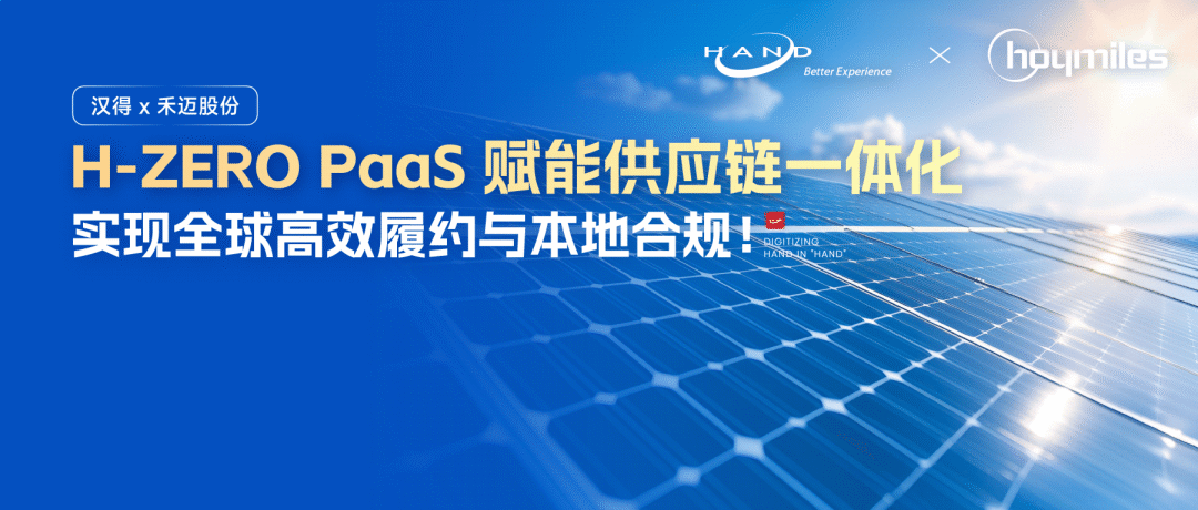 以汉得H-ZERO为核心,融合H-ONE数据平台、AI中台等产品,打造禾迈股份全球一体化集成供应链平台