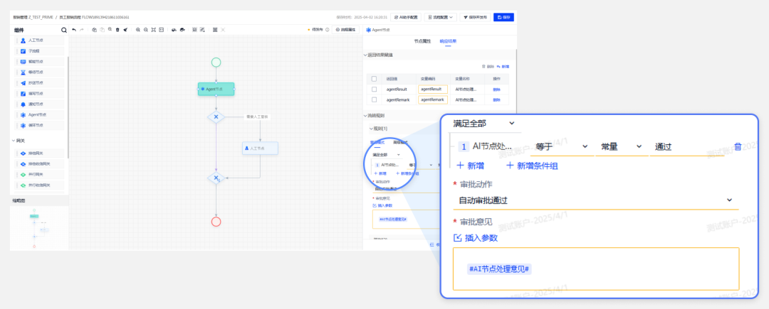 班翎流程平台1.20.0.RELASE版本于2025年6月30日发布,班翎本次重磅发布九大核心功能,从流程工作台到AI深度融合,从多端协同到审批灵活性全面升级,助力企业从沟通、决策到执行全面升级,实现企业流程管理效率提升! 新版本主要新增以下功能: 新版流程工作台:更好用的流程管理入口 审批中心:待办任务「一键直达」 手写签名:让审批落下「笔触」 三方应用配置引导增强:五步配置飞书、钉钉、企业微「审批子应用」 AI融合:让流程拥有「智慧大脑」 驳回发起人:流程中断「无缝续传」 连续加签、加审:复杂协作「丝滑联动」 审批矩阵增强:复杂架构「灵活配置」 评论功能:让审批沟通「零距离」 新增功能 新版流程工作台分为流程门户和个人门户: 流程门户 管理员可快捷创建流程,查看已启动流程的运行状况,耗时分析、异常预警,流程健康度一目了然 个人门户 个人用户可查看个人待办、已办、发起、抄送、评论事项、查看个人审批效率,实时统计个人审批耗时、通过率等,助力优化审批习惯 将班翎任务集成至外部审批中心 支持关联飞书、钉钉审批中心,将班翎待办任务同步至企业现有的飞书/钉钉审批中心,员工在熟悉的IM工具中即可完成审批,消息提醒、附件预览、流程回溯无缝衔接 ◈ 跨平台协同:审批结果自动同步回班翎系统,数据双向实时更新 ◈ 移动端适配:兼容飞书/钉钉小程序,手机端审批体验流畅 << 滑动查看下一张图片 >> 集成外部流程任务,将班翎作为审批中心 将外部系统工作流同步至班翎审批中心,待办任务统一至班翎审批中心审批 << 滑动查看下一张图片 >> 支持审批人在PC端/移动端手写签名审批,实时存档,满足合同签署、财务报销等场景的合规性要求 · 典型场景: ◈ 采购合同审批:供应商签章+内部审批签名 ◈ 离职申请审批:员工手写确认离职意愿,避免纠纷风险 << 滑动查看下一张图片 >> 企业微信、飞书、钉钉审批子应用配置引导,仅需五步即可快速配置用于班翎审批的移动端子应用。非技术人员也可以快速搭建审批子应用 << 滑动查看下一张图片 >> 新增Agent节点 支持在流程中配置Agent决策节点,支持调用企业自有模型(如风险评估、合规检测),实现流程流转的动态判断,提升流程审批效率,减少人工操作 · 典型场景:报销流程中,Agent自动识别发票重复提交,触发「驳回并标注问题」 新增AI助手 审批人审批时可实时对话,对话AI助手获取辅助信息 · 典型场景:审批合同中,AI自动提取「违约金条款」「有效期」等关键信息 审批人可选择「驳回至发起人」,发起人修改后无需新建流程,直接恢复原流程实例继续流转: ◈ 避免流程断层:历史审批意见、附件、变量数据完整保留 ◈ 场景适配:投标文件修改、预算调整等场景,缩短流程审批周期 支持多人连续加签/加审,被加签/加审人可直接在当前流程节点后追加审批环节 审批矩阵维护时,支持同一维度(如部门、职级、项目类型)维护多组审批人,提升配置效率,避免重复配置 << 滑动查看下一张图片 >> 在审批流程的各个环节用户可随时发起评论,与流程相关人员进行高效沟通,提升决策效率 实时沟通,快速解决疑问 审批人在处理待办任务时,若对申请内容存在疑问,可直接在评论区留言,@相关人员进行解答。例如,在项目预算审批中,财务总监对某项费用支出存疑,通过评论功能@项目负责人,对方可立即回复解释,避免反复退回修改,加速审批进程 历史记录,追溯更清晰 所有评论内容自动存档,形成完整的沟通记录。无论是后续复盘还是审计核查,都能清晰追溯审批过程中的讨论细节和决策依据,为企业管理提供有力支持 << 滑动查看下一张图片 >> 支持配置表单数据自动渲染表单 支持在流程中传递低代码页面渲染数据 支持个人工作流中的待办、已办表单分别配置 管理员干预操作增加:新增流程推动、终审等 低代码平台快捷创建流程时支持关联已有流程 支持配置风险规则(预警通知规则),进行预警通知和逾期通知 支持个人配置是否接受在钉钉、飞书、企微微信中的流程通知 审批人指定审批人时支持同时指定审批方式 新增加签、加审任务退回 提交人/审批人兼岗时支持指定提交/审批岗位 新增流程变量赋值事件 ...... 本次更新覆盖「效率工具」「智能决策」「多端协同」「高效沟通」四大核心场景,从沟通、决策到执行全面升级,助力企业流程管理进入「敏捷化+智能化」新时代。欢迎各位升级体验! 1. 如果您想了解飞搭更详细的功能介绍和产品信息,可以查阅我们的产品文档,请在PC端打开 ➡️ 汉得焱牛开放平台(open.hand-china.com) 2. 如果您有疑问或者建议,也可以通过开放平台进行工单反馈,问题分类请选择【产品/汉得-班翎流程平台WittyFlow】 3. 相关产品咨询或更多信息了解,欢迎联系我们邮箱 ➡️ openhand@vip.hand-china.com 携手汉得,共铸硬核竞争力!