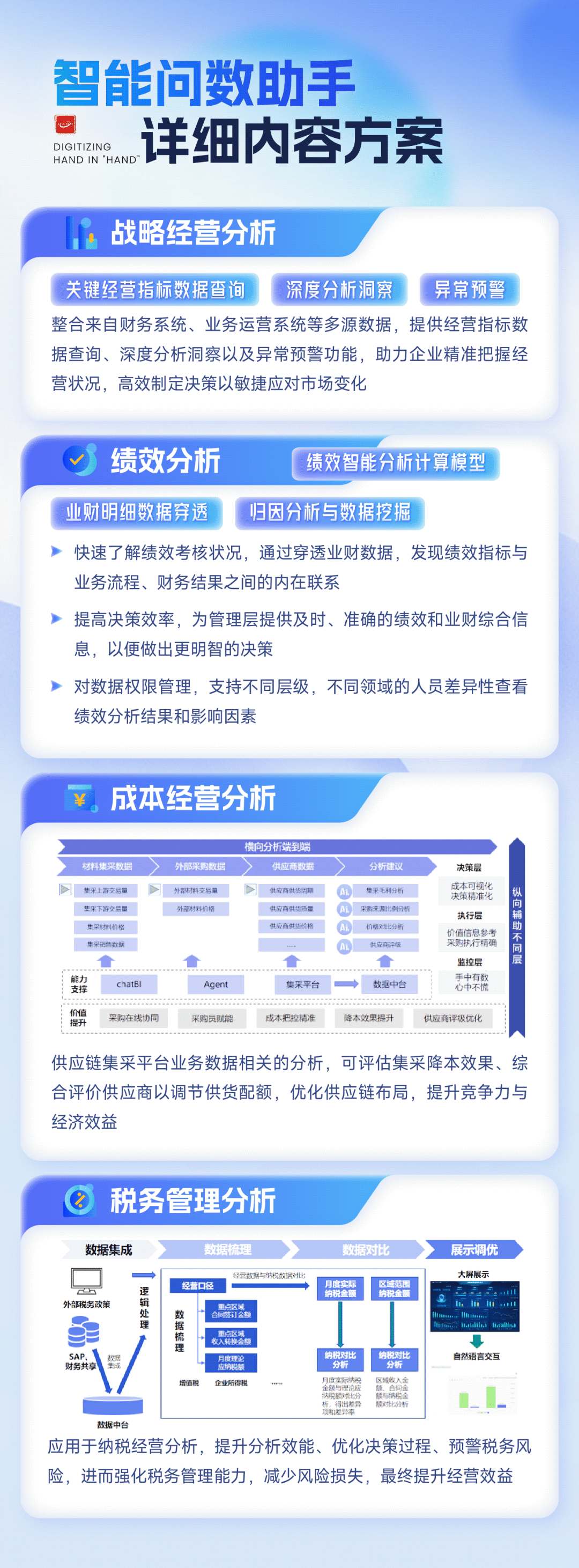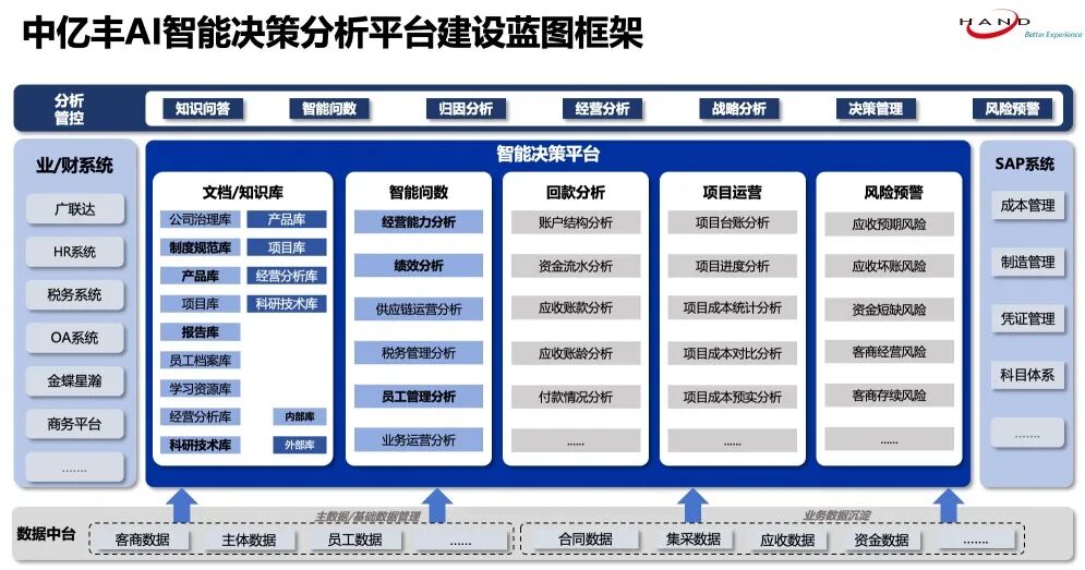 在数智化转型加速的今天,企业不仅关注效率提升,更关注如何通过智能手段,实现精细管理与风险可控。人工智能正在从局部尝试走向体系化建设,成为推动企业管理升级的重要力量。 在建筑等重资产、长周期行业中,这一趋势尤为明显:项目管理复杂、供应链协同难度大、风险管控压力高,AI助力企业从“经验驱动”向“数据驱动”的转型已成行业共识。 中亿丰控股集团作为行业先行者,与汉得大客户数字化平台事业部携手打造的AI智能决策分析平台,首期建设已顺利完成并成功上线,实现知识管理与数据分析的实质性突破。 在此基础上,双方正进一步拓展至回款、运营、风险管控及供应链协同等关键领域,推动合作由单一场景向全链路深化。这不仅彰显了AI赋能企业管理的现实价值,也为建筑行业智能化转型提供可复制的实践路径。 以数智化思维驱动融合发展 中亿丰控股集团 中亿丰控股集团有限公司(以下简称“中亿丰”),始建于1952年,连续多年入围中国民营企业500强,是集城市建设、先进制造、科技孵化、产业金融、现代服务五大产业于一体的综合性建筑产业集团,处于行业龙头地位。 集团总部设在苏州相城区,拥有员工5000余人,旗下包括中亿丰建设、中亿丰罗普斯金、中亿丰数字科技、中亿丰物产、中亿丰文旅、中亿丰越南等100余家境内外控股子企业,其中罗普斯金(股票代码002333.SZ)在A股上市,3家公司在新三板挂牌,共有19家高新技术企业及8家专精特新企业,获得ESG评级A+。 集团扎根服务长三角一体化发展,业务遍及国内主要城市群,稳健开拓越南、泰国等“一带一路”东南亚市场。业务布局以投融建运一体化为主线,提供涵盖投资开发(地产开发、产业园运营)、工程建设(房建、市政双特资质)、铝业制造(门窗幕墙、光伏边框、工业铝材精深加工)、智能建造(软件研发、智能装备)、光伏建筑一体化、供应链金融、文旅运营为核心的高质量产品与卓越服务。 AI赋能管理升级 数据驱动决策未来 AI中台助中亿丰迈入新阶段 2025年6月,中亿丰与汉得大客户数字化平台事业部携手打造的AI智能决策分析平台顺利完成第一阶段建设,实现知识管理与业务数据分析的突破。 平台首期重点建设两大核心功能:知识库智能问答与智能问数,通过深度融合企业业务场景与管理需求,解决知识分散、数据查询复杂、决策响应慢等痛点。 << 滑动查看下一张图片 >> 知识库智能问答助手 员工可通过自然语言快速查询制度、技术标准、项目案例及培训资料,形成统一知识出口,告别传统翻文件或问同事的低效模式。AI系统通过持续优化语义匹配,提高问答准确率,为员工提供随时可用的“智慧大脑” 智能问数助手 非技术人员通过自然语言,即可获取实时业务数据洞察,多系统数据关联分析和可视化报表生成功能,大幅降低数据分析门槛,支持快速决策 首期平台上线后,知识库问答和智能问数功能已广泛应用于日常工作中,尤其在项目现场和财务部门表现突出。 项目现场员工能够快速查询技术标准,财务部门可实时分析经营数据,整体工作效率明显提升。 客户反馈,平台已成为集团知识管理与业务分析的重要支撑,初步形成数据驱动管理的基础能力! 三助手驱动智能管理升级 全链路协同拓展AI应用新边界 在首期成功经验基础上,项目于2025年7月下旬正式进入第二阶段实施周期,聚焦企业核心业务链条,重点推进回款分析、运营管理和风险预警三大核心场景,推动企业管理由局部智能向全链路智能迈进。 项目回款分析助手 通过业财数据智能分析,准确追踪应收账款与回款进度,自动化逾期预警,辅助业务部门及时介入,实现财务管理效率提升与风险控制增强 项目运营分析助手 整合项目运营数据,强化预算执行、合同付款等关键流程监控,提供预实分析和同类项目对比功能,推动项目管理从经验驱动向数据驱动转型 风险预警助手 结合数据中台与外部数据源,运用AI分析进行风险识别和合规监控,形成可复用的风险管理基础,增强企业整体风险应对能力 随着第二阶段功能的陆续上线,平台将逐步形成覆盖“知识管理-数据分析-运营监控-风险防控”的全链路智能决策体系,助力中亿丰成为智慧建造领域的创新引领者。 汉得将通过系统化赋能体系,帮助中亿丰IT团队沉淀AI交付经验、掌握领先技术实践,逐步构建自主完成高端项目的关键能力,实现从“实施执行”到“价值共创”的全面转型。 同时,双方合作已从财务与运营领域延伸至供应链协同。供应链协同AI咨询项目已启动,覆盖建设、供应链、制造等关键业务流程,重点优化“寻源-采购-履约-支付”全链路管理,解决非标品采购难、供需协同效率低、履约跟踪滞后等痛点,实现降本、增效、优控目标。 项目组通过线下工作坊与业务团队紧密协作,深耕业务场景,精准挖掘AI赋能点,为建筑行业智能化供应链树立标杆! 线下工作坊培训 从行业视角来看,中亿丰智能决策分析平台实践表明,AI在建筑企业的应用具有标杆价值: 知识资产化 将经验和信息转化为可复用的数字资产,减少人才流动带来的知识流失 决策敏捷化 实时数据洞察缩短发现问题到制定策略的链条 风险透明化 AI预警功能提前识别潜在风险,降低事后补救成本 携手共创 智领未来 与中亿丰共建行业智能新生态 汉得与中亿丰的合作,是技术赋能与行业深耕的有机融合。 作为