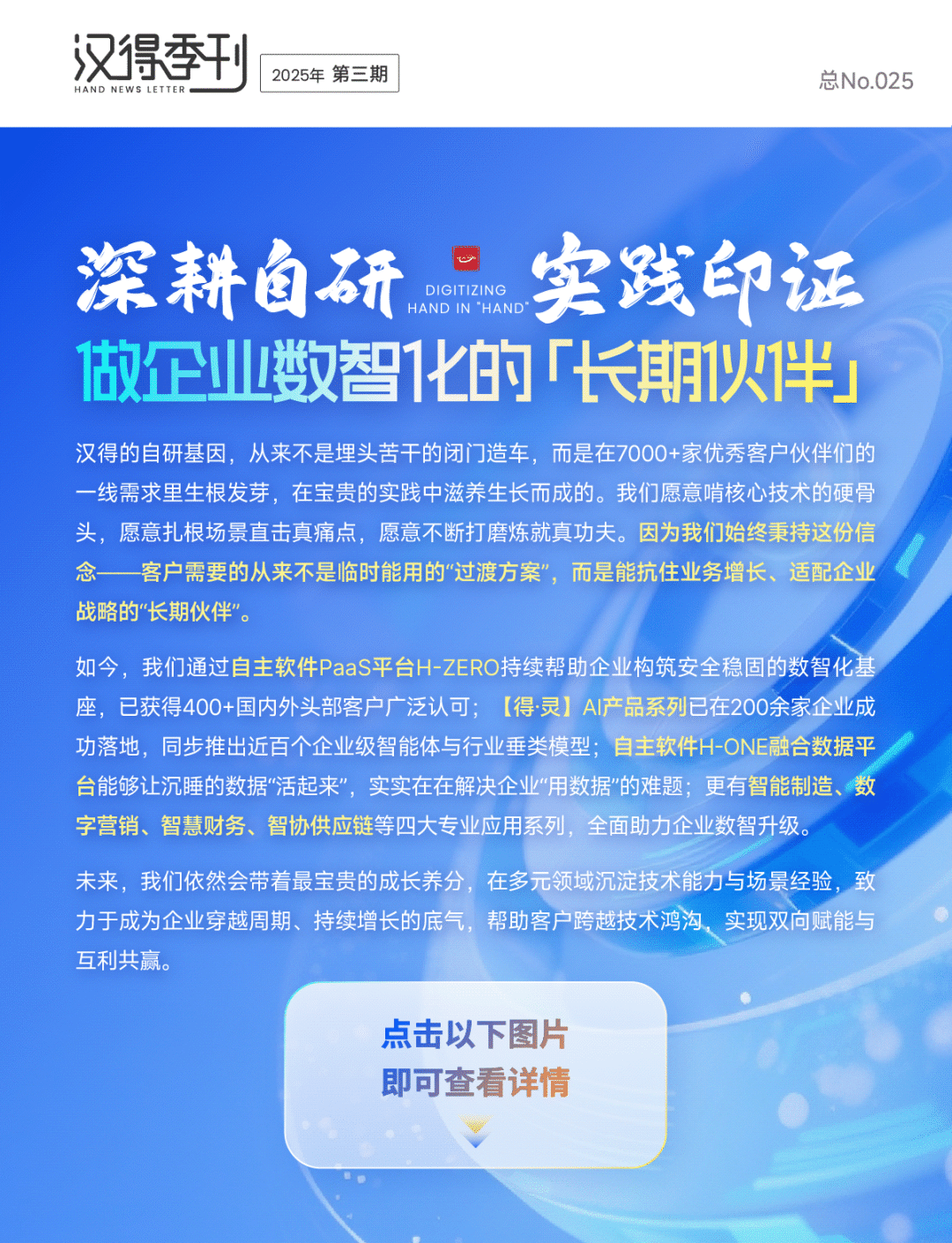 汉得已同步推出近百个企业级智能体与行业垂类模型,【得·灵】AI产品系列已在200余家企业成功落地