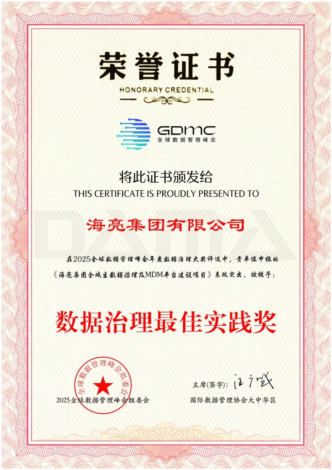 2025年9月26-28日,作为第四届全球数字贸易博览会核心板块的2025全球数据管理峰会在杭州圆满落幕。 这场以“数据 x AI”为核心主题的行业盛会,汇聚全球政产学研领域的顶尖智慧,汉得凭借在数据管理领域的深厚积累与创新实践,现场一举斩获三项重磅荣誉,并与DAMA达成关键战略合作,同时应邀分享前沿实践成果,全方位彰显专业硬核实力! 汉得数据治理实力获高度认可 斩获三项重磅荣誉 数据治理优秀产品奖 汉得H-ONE融合数据平台产品,凭借在数据整合、治理、应用等环节的全流程赋能能力,以及为企业数字化转型提供稳定、高效支撑,获评“数据治理优秀产品奖”。 汉得H-ONE融合数据平台,提供一站式的大数据存储、数据开发、治理、主数据管理、服务管理、资产管理、运营管理,以及ChatBI智能分析能力,提供覆盖咨询-产品-服务的全域数据解决方案,以数据驱动企业管理提效、业务提速与财务增值,助推企业重塑增长驱动力。 数据治理最佳实践奖 汉得主导落地的“海亮集团主数据治理项目”荣膺此项殊荣,作为数智化能力与企业战略深度融合的经典案例,该项目连续2年获评该奖项。 海亮集团作为连续多年上榜世界500强、业务覆盖12个国家和地区的多元化集团,此前曾面临“数据孤岛”、标准不统一、管理权责分散等痛点。 汉得基于其“12345”数字化转型战略,以“两体系一平台”为核心落地路径,历经8个月完成物料、客户等12项核心主数据管理。 项目创新性实现标准-流程-平台-接口“四个统一”,统一集团物料五段码分类模板1500余套,与SAP、CRM等9大系统无缝集成,覆盖浙江基地二十余家公司。 不仅成功解决跨领域数据壁垒,更支撑生产、采购等四大领域业务价值持续提升,为海亮全球业务协同与AI大模型应用夯实数据基础,成为多业态集团主数据治理领域经得起时间检验的典范! 数据治理专家奖 汉得数智事业部总经理曹正炎先生,凭借在数据治理领域的深度洞察、丰富项目经验及对行业标准的积极践行,成功获评“数据治理专家奖”。 汉得数智事业部是H-ONE融合数据平台、HDSP数据开发治理平台、HMDP主数据平台、ChatBI灵悉智能问数平台等多个硬核产品的原厂部门,能为企业提供从咨询规划,到落地交付,再到运维支持的全链路专业服务。 本次获奖,不仅是对曹正炎先生个人在数据治理领域深厚造诣与卓越贡献的高度肯定,更是对汉得专家团队专业能力与行业影响力的权威认证。正是有这样一批顶尖专家的引领,汉得才能为企业客户提供更前沿、更可靠的数据战略咨询。 从产品、实践到专家,充分体现出汉得对数据在治理与应用中的核心价值的认知——构建“数据JIT”(Just In Time),其核心是:在正确的时间,将正确的数据,以正确的形式,传递给正确的人,以支持正确的决策。 让数据成为驱动企业运转的血液,从“成本中心”转变为无可替代的“竞争力引擎”。 共筑全球数据管理生态新蓝图 汉得战略签约DAMA 在本次峰会上,汉得副总裁林俊滨先生与国际数据管理协会(DAMA)副主席代国辉先生作为双方代表,正式签署战略合作协议,标志着汉得在数据管理标准化、国际化合作领域迈出关键一步,也为双方共同推动全球数据管理生态建设奠定坚实基础。 国际数据管理协会(DAMA)是全球数据管理领域最具权威性和影响力的专业组织,其推出的DMBOK(Data Management Body of Knowledge)是DAMA发布的数据管理知识体系指南,被誉为数据领域的“百科全书”。 此次与DAMA大中华区达成战略合作后,汉得将充分整合自身在企业数字化服务领域的实践经验,与DAMA共同开展数据管理知识体系的推广、专业人才的培养、行业标准的落地等工作: ◈ 联合开发符合中国企业需求的数据管理课程与认证体系,助力企业数据人才能力提升 ◈ 共同探索“数据 x AI” 融合场景下的最佳实践,推动数据管理技术在各行业的深度应用 ◈ 携手打造数据管理生态平台,链接全球资源,为中国企业数字化转型提供国际化视野与本地化支持 数据如何成为员工超级助手 前沿实践分享 在本次大会的主题演讲环节,汉得资深专家周阳受邀发表题为《数据如何成为员工超级助手》主题演讲,并一针见血地指出了企业普遍面临的困境:“不是不努力,而是不协同”。 他深刻剖析企业内部运营失衡、外部协同割裂、战略集成缺失三大维度下的九大典型业务场景,如“需求预测难、计划与执行脱节、高缺货高库存并存、订单履约不透明”等,引发与会者的强烈共鸣。 周阳还进一步阐述如何通过“塔·台·室”三层数字化场景设计能力与“天地融合”的数字化底座支撑能力,让“数据JIT”理念落地生根: 塔(看得全) 实现订单、库存、生产、采购等全链路数据的全局可视 台(管得住) 提供从指标监控、异常预警、根因分析到处置建议的闭环管理 室(协同快) 实现跨部门计划分解、任务分工与进度协同 坚实底座 以H-ONE融合数据平台和汉得AI中台为核心,整合从泛ERP实施到智慧供应链、数字营销等丰富应用,为企业修好数据流通的“高速公路” 演讲现场,周阳还展示了实现“数据JIT”后为企业带来的可量化价值,例如:需求预测准确率提升至85%以上、客户准时交付率稳定在95%以上、仓储物流总成本降低10%-15%、新品上市周期缩短30%-50%等,这些实实在在的收益,让“数据成为员工的超级助手”这一愿景变得触手可及。 荣誉,是过去