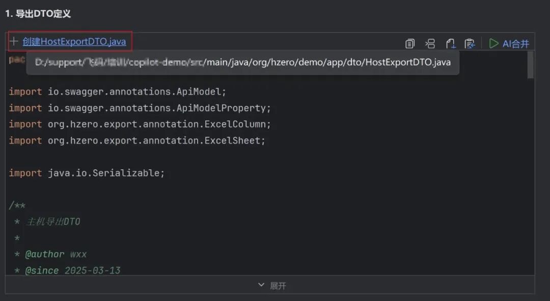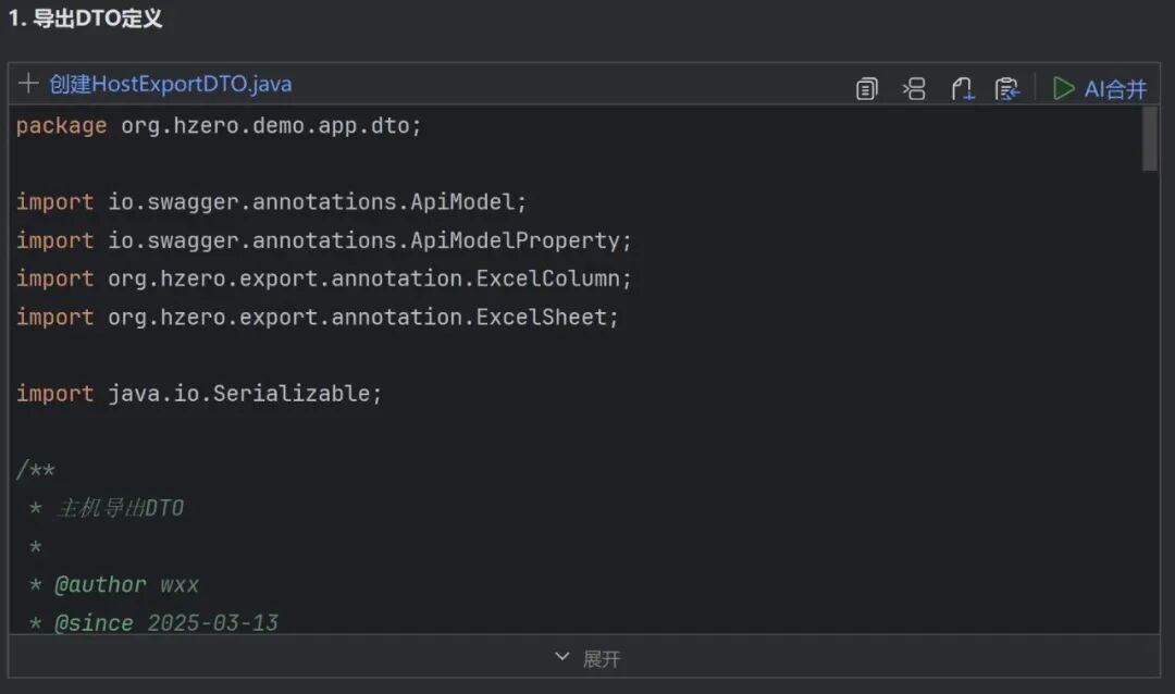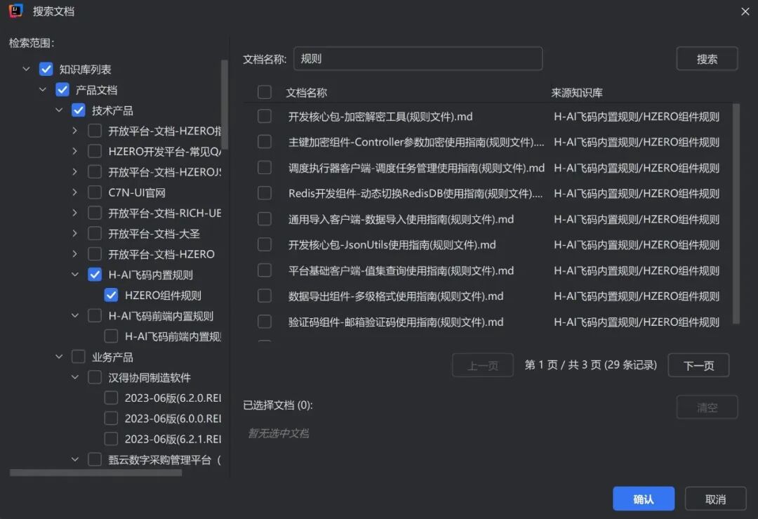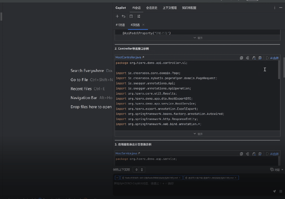 汉得企业级智能编码助手(中文名“飞码”,英文名“H-AI Coder”,以下简称“飞码”),结合AI智能驱动与H-ZERO专属规则驱动,支持智能代码补全、代码对话问答、智能代码诊断、知识问答、高质量H-ZERO相关脚手架代码生成等场景,同时支持企业级权限管控及可视化分析,旨在提供更加规范、高效的开发体验,提升用户开发效率与代码质量。 本次版本主要围绕编码更流畅、对话更高效、知识更精准三大方向持续打磨,全面提升交互体验、稳定性与实用性: 智能代码补全升级:支持单次补全结果全量缓存,连续确认更流畅,补全质量更稳定 智能对话体验优化:代码展示更清晰,支持一键创建文件、插入/替换代码、快速跳转与Diff对比等;同时,新增「AI合并」,AI建议代码可一键智能合并至本地文件,操作更高效 @KMS-Docs 能力增强:支持手动筛选知识库文档作为上下文,让问答更聚焦、更精准 插件更新自动推送:新版本发布后将第一时间推送更新,无需手动检查,即可及时获取最新功能与优化体验,确保您始终保持最佳版本 体验与稳定性全面优化:持续完善性能表现,修复已知问题,让整体使用体验更加稳定、可靠 一、智能代码补全升级 补全更流畅 飞码V1.2.6对代码补全能力进行了全面深度优化,引入单次补全结果全量缓存机制。在连续多次确认补全的场景下,系统无需重复计算,即可快速响应,显著降低等待与卡顿感,整体补全体验更流畅、结果更稳定,让编码过程更加专注、高效。 二、智能对话体验优化 操作更高效 飞码V1.2.6对智能对话界面进行了系统性升级,围绕代码可读性与操作高效性持续优化。新版对话框中,代码展示结构更加清晰,关键内容一目了然;同时支持一键创建文件、插入或替换代码、快速跳转至目标位置及Diff对比等高频操作,将“看代码、改代码、用代码”整合为一个连续闭环,显著降低上下文切换成本,让对话式编程真正服务于开发过程。 1. 优化代码展示体验 全面优化对话结果中的代码块展示结构,可读性更强、交互体验更好,显著提升代码浏览与编辑体验。 2. 一键创建本地文件 支持在对话结果中将代码块直接保存为本地文件,快速完成代码落地与工程接入,提供如下两种创建方式: 方式一:AI 规划路径,自动识别并按AI规划的目录结构一键生成文件。 方式二:手工指定路径,支持自定义保存路径及文件名,满足各种自定义场景需求。 3. 智能插入与替换 支持“插入到光标处”与“替换选中代码”两种插入模式,系统可根据当前编辑状态自动匹配最合适的写入方式,减少误操作,使用更顺畅。 4. 支持快速跳转与Diff对比 支持代码块与本地代码文件的快速跳转,降低手动查找与定位成本。 新增一键快速Diff功能,方便对比AI建议的代码与本地文件的差异,辅助高效决策。 5. 新增「AI合并」能力 新增「AI 合并」能力,可一键将AI建议的代码智能合并至本地文件,自动处理结构适配与潜在冲突,让代码修改从“对比—复制—粘贴”升级为一次完成,显著提升合并效率及质量。 三、@KMS-Docs能力增强 知识更精准 在原有自动知识融合能力的基础上,飞码V1.2.6 进一步增强@KMS-Docs的灵活性与可控性。用户可根据实际需求,手动检索、筛选并指定知识库中的特定文档作为问答上下文,让AI聚焦于真正相关的信息来源,避免无关干扰,使知识引用更精准,更贴合真实业务场景。 在@KMS-Docs上下文中,选择「手动检索知识库文档」。 然后在左侧先确定目标知识库范围,再根据文档名称关键字检索所需文档。 最后勾选并确认目标文档后,即可将所选文档批量添加至当前问答上下文。 四、插件更新自动推送 升级更及时 飞码V1.2.6引入插件更新自动推送机制。新版本发布后将第一时间推送更新,无需手动检查,即可及时获取飞码最新功能与优化体验,确保您始终保持最佳版本,让升级过程更省心、更轻松。 结语 以上内容主要从四大方面介绍了飞码V1.2.6的新特性。更多功能细节可参阅开放平台文档,或随时联系研发团队。未来我们将持续迭代,为您带来更多智能编程体验,期待与您交流! � 欢迎在评论区留言,一起探讨智能编程在您业务中的应用潜力~ 1. 如果您想了解飞码更详细的功能介绍和产品信息,欢迎查阅我们的产品文档 请在PC端打开 ➡️ 汉得焱牛开放平台 【文档>技术产品>汉得H-AI飞码智能编码助手】 2. 相关产品咨询或了解更多信息,欢迎联系我们 邮箱 ➡️ openhand@vip.hand-china.com 3. 试用飞码期间,若您有任何问题需要咨询,都可前往焱牛开放平台(open.hand-china.com)提反馈,或将疑问发往联系邮箱。我们有专业人员针对您的问题进行解决回复,技术精良的研发团队根据您的反馈进行应用优化。期待您的反馈,我们将用心对待每一份回应~ 携手汉得,共铸硬核竞争力!