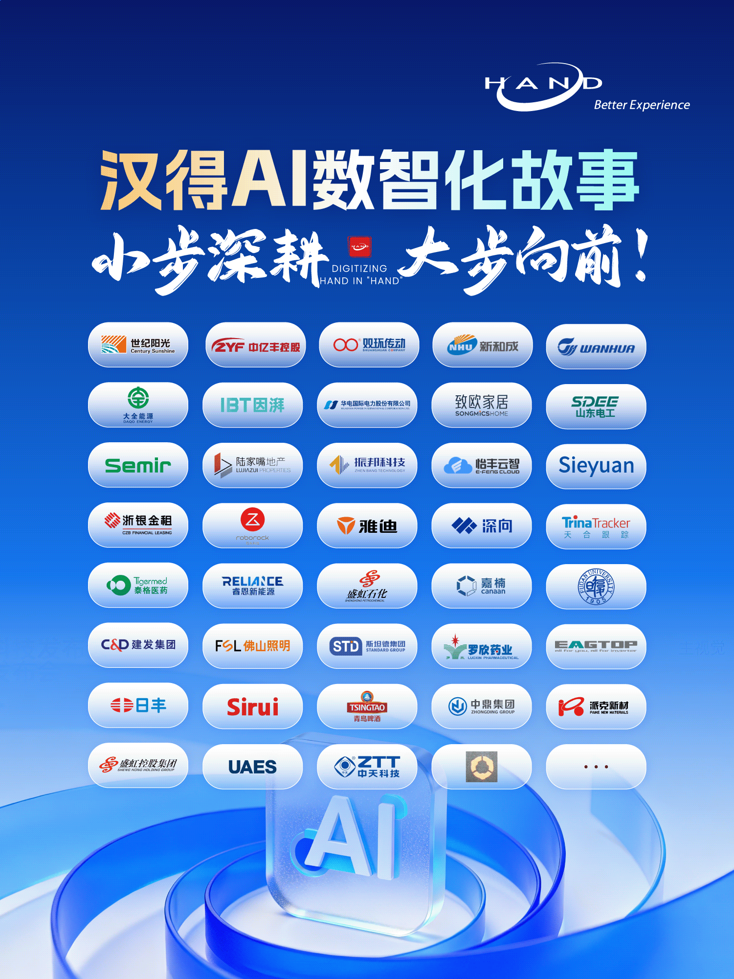如今,越来越多的客户伙伴启动AI进程,平台、产品、智能体场景化落地持续加速。这些看似“小步”的探索创新与落地成果背后,是一段段极具价值的数字化故事,垒砌起汉得与万千企业伙伴迈向数智未来的同行之路,也书写着属于AI时代的坚守与笃行。